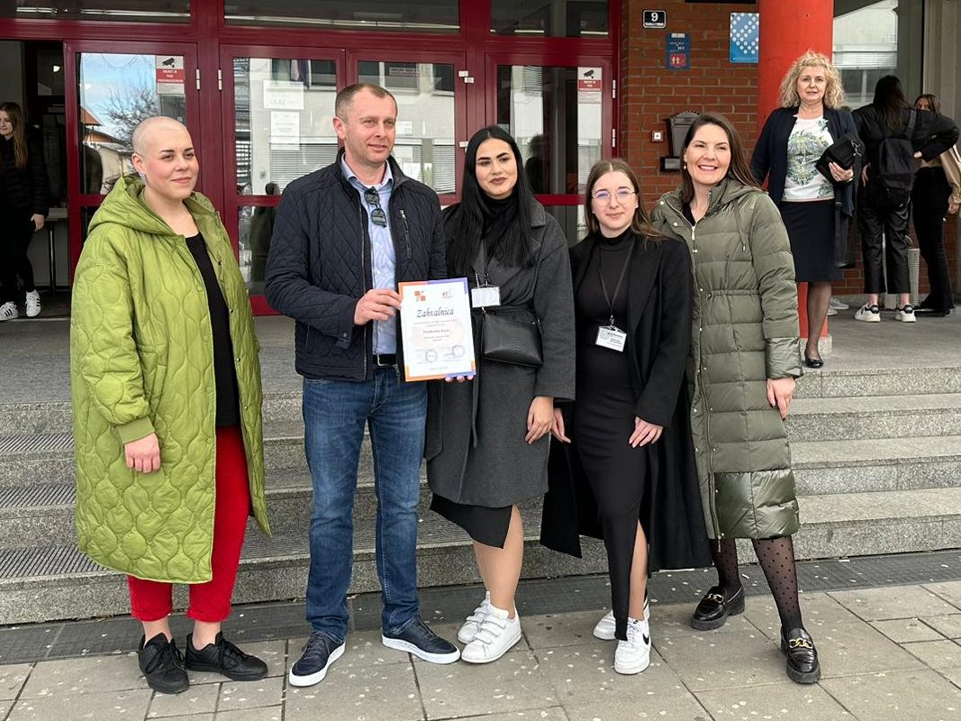 Na poziv Odjela, u navedenom programu, sudjelovale su učenice naše škole smjera ekonomist: Petra Vidović, Karla Oberan i Kristina Novaković koje su s nastavnikom, mentorom Dubravkom Glavinićem predstavile našu digitalnu platformu „e-School bank“, nastalu kao rezultat istoimenog Erasmus+ projekta.
